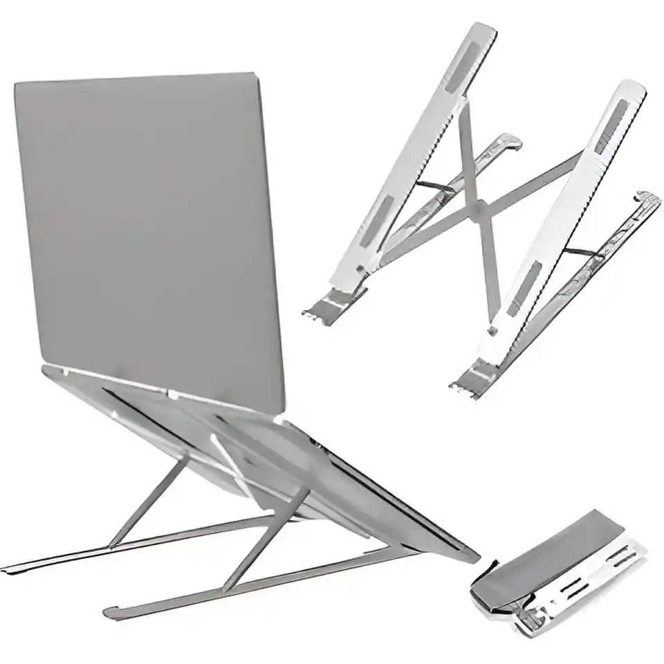 Base metálica ajustable para laptop fabricada en aluminio resistente, ideal para mejorar la postura y evitar el sobrecalentamiento del computador. Su diseño plegable permite transportarla fácilmente y usarla tanto en casa como en oficina. Cuenta con múltiples niveles de inclinación para adaptar la altura según tu comodidad, reduciendo la tensión en cuello y espalda. La estructura metálica es firme, antideslizante y soporta portátiles de diferentes tamaños sin moverse. Perfecta para estudio, trabajo remoto, gaming y uso diario. Ocupa poco espacio y mejora notablemente la ventilación del equipo.