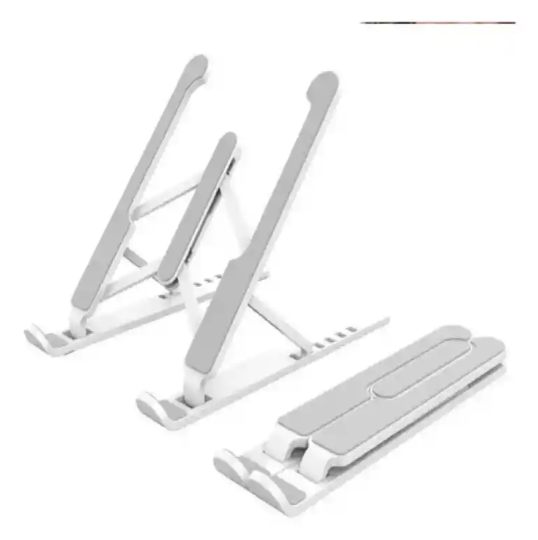 Soporte Ajustable para Portátil y Tableta – En Aluminio, Altura Regulable de 55 a 155 mm Descripción general: Este soporte es la herramienta ideal para mejorar tu postura, comodidad y productividad al trabajar con portátiles o tabletas. Compatible con la mayoría de dispositivos de 11 a 15.6 pulgadas, eleva el equipo para facilitar la ventilación y reducir el riesgo de sobrecalentamiento. Su diseño ergonómico permite ajustar la altura y el ángulo para una experiencia visual y de escritura más cómoda. Características destacadas: Compatibilidad universal: Apto para laptops, tablets, MacBooks y dispositivos entre 11 y 15,6 pulgadas. Diseño ergonómico y ajustable: Ofrece 6 niveles de altura ajustable, permitiendo adaptarse a diferentes ángulos y posturas de uso. Altura regulable: Ajuste de altura entre 55 mm y 155 mm, ideal para reducir la tensión en cuello, espalda y muñecas. Ventilación eficiente: Al elevar el dispositivo, mejora la circulación de aire, evitando el sobrecalentamiento durante el uso prolongado. Fabricación robusta: Construido en aleación de aluminio, resistente, ligero y duradero. Ideal para uso doméstico, oficina o estudio. Diseño plegable y portátil: Fácil de transportar gracias a su estructura compacta y a la bolsa de almacenamiento incluida. Especificaciones técnicas: Material: Aleación de aluminio Altura ajustable: de 55 mm a 155 mm Compatibilidad: Dispositivos de 11" a 15.6" Niveles de ajuste: 6 posiciones Color: Según disponibilidad (generalmente gris plata) Peso: Liviano y fácil de transportar Contenido del paquete: 1 x Soporte plegable para portátil y tablet 1 x Bolsa de almacenamiento 1 x Manual de usuario (idioma del fabricante) Aplicaciones comunes: Uso en escritorio, oficina, estudio o trabajo remoto Clases virtuales, videoconferencias, escritura prolongada o diseño Ideal para quienes buscan comodidad y mejorar su postura frente al computador Garantía del vendedor – TECNO ANDRES: 30 días por defectos de fábrica. No cubre daños por mal uso, caídas, humedad o modificaciones. Es obligatorio conservar el empaque original y el comprobante de compra.
