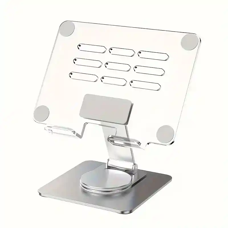 El soporte para tablet y libros de acrílico giratorio 360° es la solución ideal para quienes buscan comodidad y versatilidad en su espacio de trabajo o estudio. Diseñado para ser montado en mesa, este soporte permite una rotación completa, facilitando el acceso y la visualización desde diferentes ángulos. Con un ancho de 18 cm y un largo de 14 cm, su diseño compacto se adapta a cualquier entorno sin ocupar demasiado espacio. Fabricado en acrílico de alta calidad, este soporte es ligero, con un peso de solo 0,422 kg, lo que lo hace fácil de mover y ajustar según las necesidades del usuario. Su capacidad para sostener una tablet asegura que puedas disfrutar de tus lecturas, videos o presentaciones de manera cómoda y eficiente. Ideal para estudiantes, profesionales y amantes de la lectura, este soporte se convierte en un aliado indispensable en tu día a día. La simplicidad de su diseño permite que se integre perfectamente en cualquier decoración, ya sea en casa, en la oficina o en un espacio de estudio. Su funcionalidad y estética lo convierten en una opción atractiva para quienes valoran la organización y el estilo. Aprovecha la oportunidad de mejorar tu experiencia de uso con este soporte práctico y elegante.