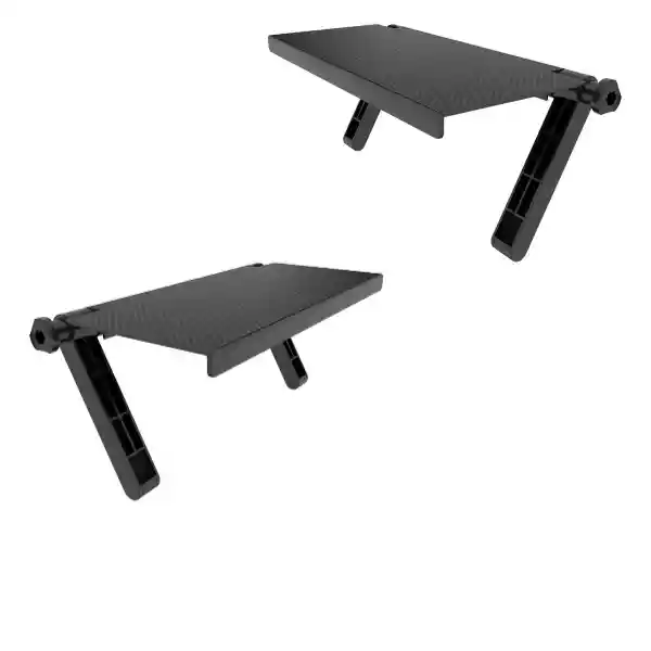 Se envían dos repisas. - El tamaño es de 33 cm de ancho y la profundidad es de 16 cm c/u. - Soporta hasta 3 kgrs c/u. - Diseño multifuncional, donde colocar sus decodificadores, videojuegos, gafas, llaves, control remoto, reloj, etc. - Tiene una goma al interior de la mesa que protege la pantalla de arañazos. - Innovadora repisa plegable y fácil de instalar en Tv y Monitores, que ayuda a maximizar la utilización del espacio.