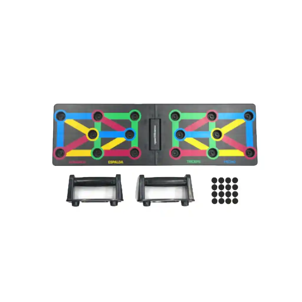 Potencia tu entrenamiento con este soporte plegable para flexiones multiposición, diseñado para trabajar diferentes grupos musculares con precisión y seguridad. Gracias a su sistema de colores guía, puedes enfocar el ejercicio en pecho, espalda, hombros o tríceps, simplemente cambiando la posición de las empuñaduras. Fabricado con materiales resistentes y antideslizantes, ofrece estabilidad y comodidad durante cada repetición. Su diseño plegable lo hace ideal para entrenar en casa, en el parque o donde quieras, ocupando muy poco espacio al guardarlo. Características: Diseño plegable y compacto Múltiples posiciones para distintos músculos Base antideslizante y empuñaduras ergonómicas Guía de colores para fácil uso Ideal para todos los niveles de entrenamiento Lleva tus rutinas al siguiente nivel con un solo accesorio versátil, práctico y fácil de transportar.
