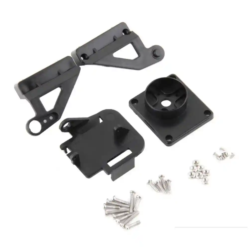 Color: Negro Material: de plastico, nylon adecuado para servos 9g-20g Antivibraciones Se mueve sobre dos ejes. Ideal para montaje de Plataforma de 28*28 cm. LA COMPRA INCLUYE: 1x SOPORTE CAMARA PARA SERVOMOTOR SG90S