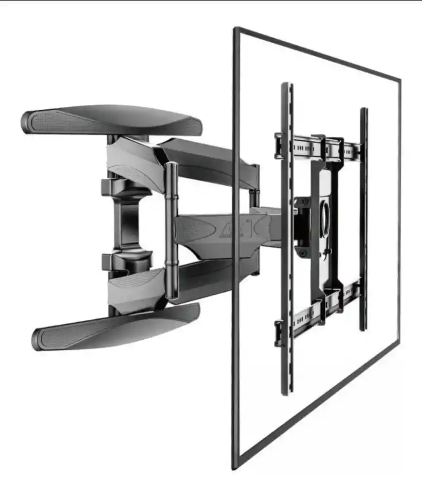Soporte de pared con doble brazo articulado ideal para televisores. Permite ajustar la posición de la pantalla fácilmente, brindando mayor comodidad y mejor ángulo de visión.