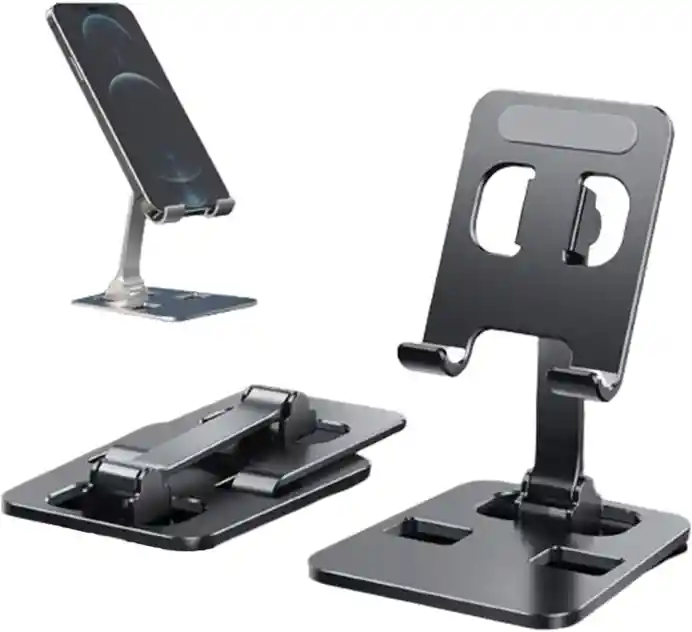 Materiales de alta calidad: el soporte para teléfono celular está hecho de aluminio de alta calidad, con una construcción resistente, puede sostener tu teléfono de forma constante, no te preocupes por ningún tambaleo en absoluto. Las almohadillas de goma pueden proteger tu teléfono de arañazos y deslizamientos