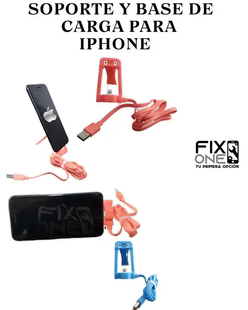 SOPORTE Y BASE DE CARGA PARA iPHONE el cable es de 1 Metro salida Usb (No incluye adaptador de corriente) ✅Color varía según disponibilidad ✅Nuestros productos antes de ser enviados son probados ✅Imagen de referencia