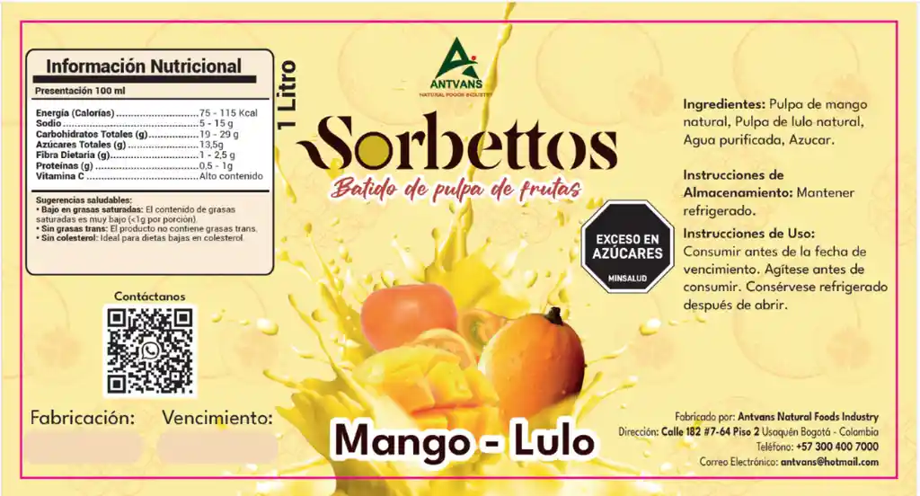Batido Puro de Pulpa de Frutas de Mango-Lulo