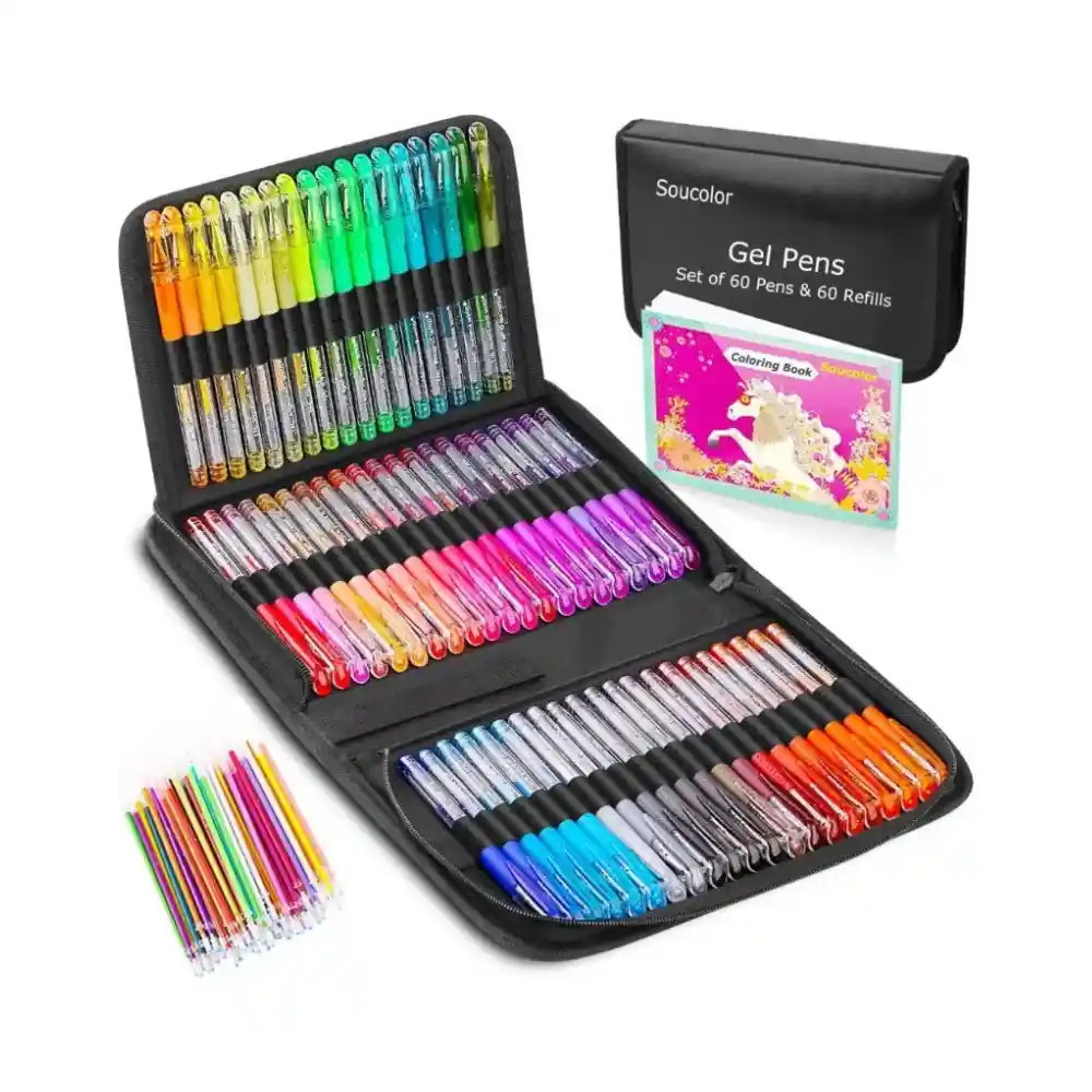 Juego de bolígrafos de gel de gran valor para niños y adultos: 60 bolígrafos de gel con 60 recambios de color a juego, 1 libro para colorear para adultos, 1 funda de transporte de poliuretano negro. 60 bolígrafos de gel incluyen 21 bolígrafos de purpurina neón y 39 bolígrafos de purpurina con efecto de purpurina que ayudan a añadir encanto adicional a tu obra de arte. Cada bolígrafo de colores está equipado con un agarre cómodo, fácil de sostener y cómodo para escribir, dibujar, álbumes de recortes, bocetos, manualidades, garabatos, diseños de arte y diario. - Calidad prémium: estos bolígrafos de gel cuentan con una punta de bolígrafo de 0.031 in a 0.039 in, lo que hace que sea fácil una aplicación de color suave y precisa. También se seca rápido, sin saltos, sin manchas, bolígrafos de gel perfectos para libros de colorear para adultos. - Bono gratis: cada juego de bolígrafos de gel está empaquetado en una funda de almacenamiento portátil que hace que sea fácil de llevar, por lo que puedes llevar tu juego de bolígrafos de gel Soucolor donde quiera que vayas para una creatividad sin parar. El estuche de viaje con inserciones individuales proporciona comodidad y mantiene tus bolígrafos en buenas condiciones. Cada juego viene con un libro para colorear gratis que lo hace más valioso. - Seguro de usar: los bolígrafos para colorear son los mejores para que todos lo usen en la vida diaria o en el trabajo escolar. Especialmente ideal para escribir, garabatos, diario, garabatos, dibujar y colorear.} - Variedad de usos: los bolígrafos de gel de alta calidad son ideales para una variedad de usos como artes y manualidades, libros de colorear para adultos y niños, álbumes de recortes, proyectos escolares, invitaciones de fiesta, tarjetas de felicitación, garabatos, decoración de bricolaje y letras para amigos y familiares, los usos son infinitos