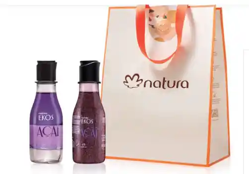Spa açaí amazónico Una experiencia de baño incomparable, que perfumay suaviza profundamente la piel. El regalo contiene: - 1 Jabón líquido exfoliante corporal 100 ml - 1 Aceite trifásico corporal 100 ml - 1 Bolsa mediana Somos Natura EKOS, potencia biocosmética para tu piel. • Somos veganos. • Nuestras fórmulas son de origen natural • Activos y bioactivos brutos de la Amazonía. • Biocompatibles con la piel y biodegradables con el medio ambiente. • Nuestros productos tienen repuestos a partir de plástico reciclado.