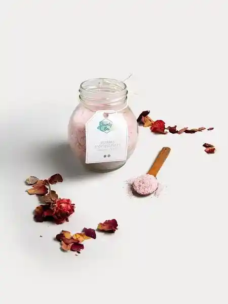Polvo efervescente con aceites esenciales y flores secas para descansar y desinflamar los pies