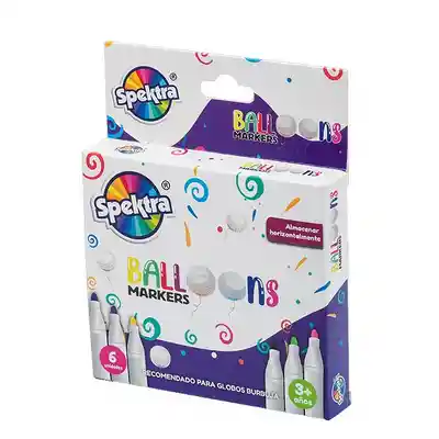 Caja Con 6 Unidades. Marcadores Ballons Markers - Spektra Crea y Personaliza Tus Globos Con Nuestros Balloons Markers, Ideales Para Todo Tipo de Globos, Diviértete Creando Diferentes Diseños Con Nuestros 6 Marcadores, Colores Vivos y Borrables. Recomendados Para Globos Burbuja. Almacenar Horizontalmente.