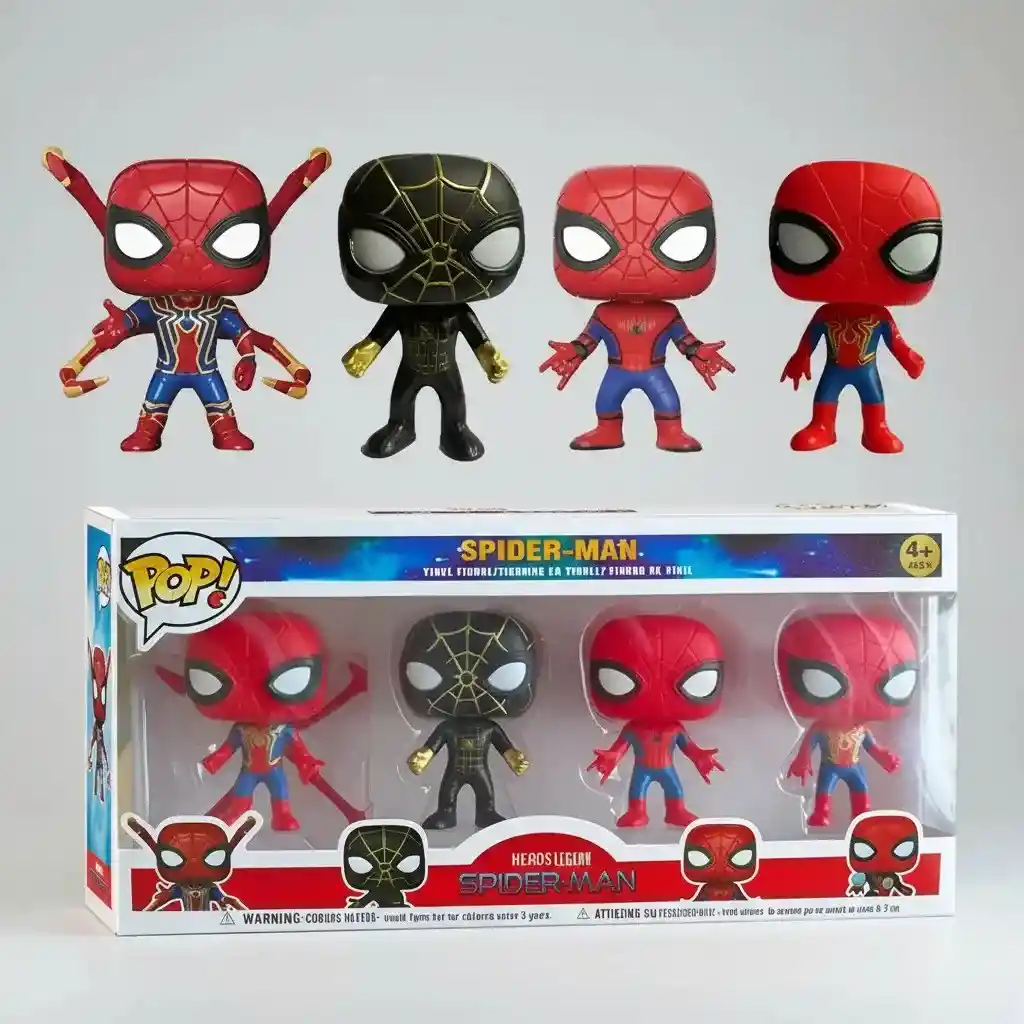 Caja de 4 figuras de spiderman tipo funko pop Imitacion funko pop Figuras de vinil coleccionables