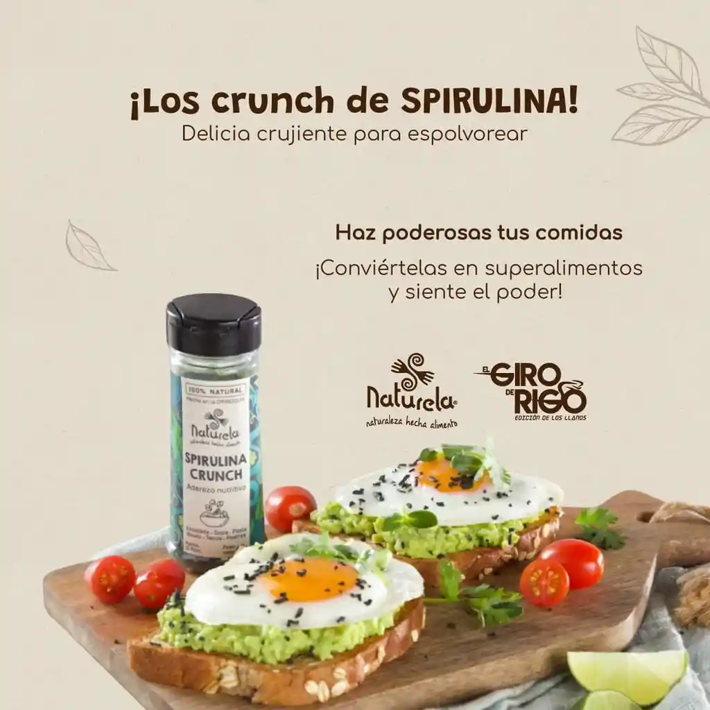 Aderezo nutritivo La espirulina crocante en polvo es una forma fácil y conveniente de incorporar la espirulina en polvo en tu dieta diaria. La espirulina es un superalimento rico en nutrientes que ofrece muchos beneficios para la salud, incluyendo la mejora del sistema inmunológico, la reducción de la inflamación y la protección contra los radicales libres. La Spirulina Crunch es especialmente útil para aquellos que buscan una manera simple de añadir nutrientes a sus comidas diarias. Puedes espolvorearla sobre ensaladas, sopas, batidos, yogures o cualquier otro alimento para aumentar el contenido de proteínas, vitaminas y minerales de tus comidas. Además, la Spirulina Crunch es una excelente fuente de ácidos grasos esenciales como el omega-3 y el omega-6, que son importantes para la salud del corazón y el cerebro. Y gracias a su alto contenido en fibra, también puede ayudar a regular el sistema digestivo y promover la saciedad. ✦ Modo de uso: Espolvorear sobre alimentos al momento de consumo, su color es verde y su sabor es suave, no cambia el sabor de tus comidas. Conservar en un lugar fresco y seco.