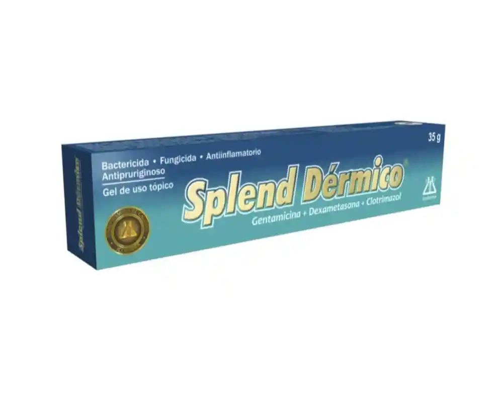 SPLEND DERMICO. GENTAMICINA, DEXAMETASONA Y CLOTRIMAZOL. 35G. BACTERICIDA, FUNGICIDA. ANTIINFLAMATORIO, ANTIPRUGIRINOSO. GEL DE USO TOPICO.