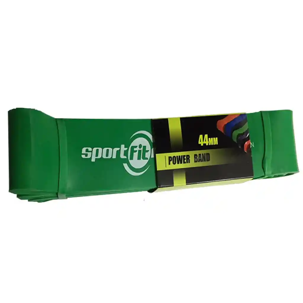 *Bandas elásticas de poder 2000x44x4.5mm verde Sportfitness:*Material: látex. Medida: 2 m x 44 mm x 4.5 mm.*Color: Verde.*Tensión: 100 – 120 Lbs.