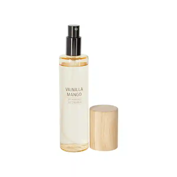 Spray Aromatizador Con Olor a Vainilla & Mango. Contiene 100 ml. Composición: Agua Alcohol Fragancia. ''En Casaideas Encontrarás Artículos de Diseño. Para Vivir Día a Día en un Espacio Que te Haga Feliz.''.