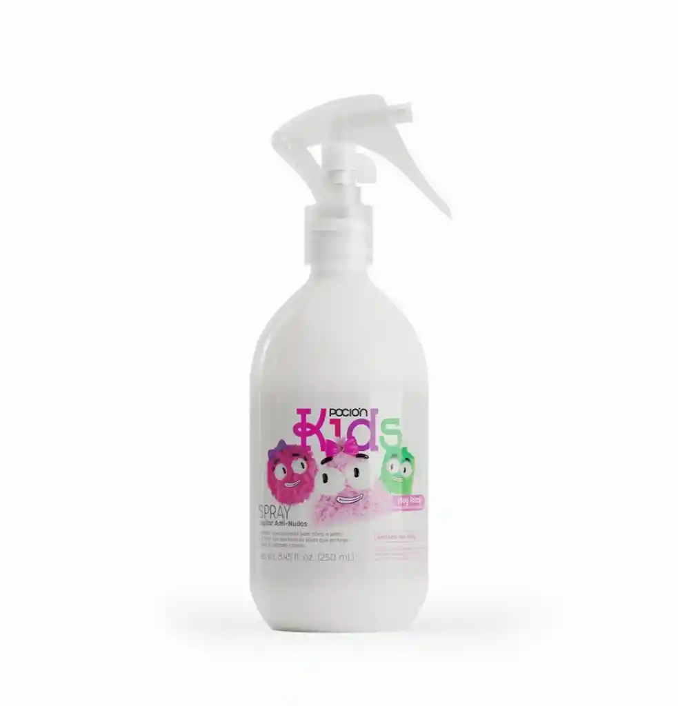 SPRAY CAPILAR ANTI-NUDOS POCION KIDS 250 ML : El Spray Anti-Nudos Poción Kids es un tratamiento sin enjuague diseñado para desenredar el cabello infantil con facilidad, sin jalones ni maltrato. Su fórmula ligera hidrata, fortalece y protege la fibra capilar desde la primera aplicación. Puede usarse sobre cabello húmedo o seco, facilitando el peinado en cualquier momento del día. Es ideal para mantener el cabello suave, brillante y libre de frizz. Fórmula ligera, sin enjuague, desarrollada con ingredientes de origen vegetal.