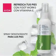 El Spray Desodorante para Pies Avon Foot Works (generalmente 100ml) es un producto de acción rápida diseñado para refrescar, neutralizar malos olores y proporcionar una sensación de limpieza duradera. Formulado con vitamina E, se seca rápidamente y se puede aplicar directamente en pies, tobillos y calzado para una frescura inmediata y protección diaria.