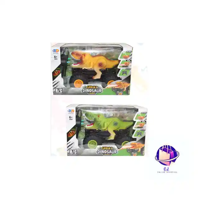 Dinosaurio interactivo con control remoto, que lanza agua por la boca y cuenta con luz LED roja simulando fuego. Funciona a batería y tiene diseño llamativo y resistente, ideal para aventuras llenas de acción y diversión para los niños.
