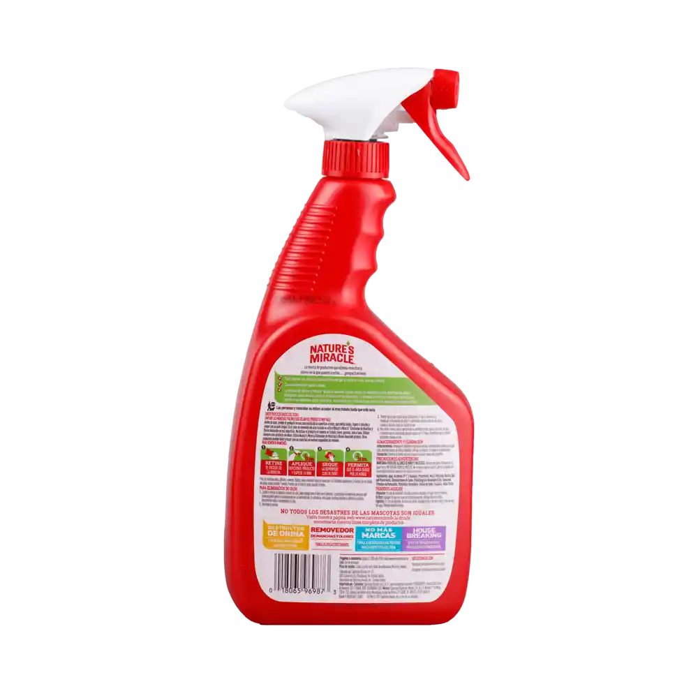 El Eliminador de manchas y olores Avanzado Aroma a limón de Natures Miracle trabaja para desalentar que el perro ensucie, al eliminar el olor de la suciedad de las mascotas. La fórmula a base de bacterias produce enzimas cuando está en contacto con material orgánico, para atacar los desastres severos de las mascotas, incluyendo orina, diarrea, vómitos y sangre. El eliminador de manchas y olores es seguro para usar en alfombras, pisos, muebles, telas y más, cuando se usa según las indicaciones. Deja un aroma fresco y ligero. La botella de spray lista para usar lo ayuda a trabajar de inmediato.