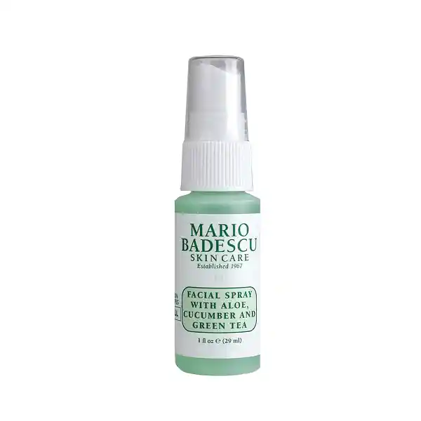 ¡Despídete de las imperfecciones y el brillo en tu rostro, Ahora en Tamaño mini! El spray facial Mario Badescu con extracto de pepino, aloe y té verde refresca, hidrata, calma y revitaliza la piel. Viene en un envase de viaje de 29 ml y también está permitido en la cabina del avión. El spray facial Mario Badescu restaura la piel apagada y cansada al instante. Instrucciones de uso: Aplícalo solo para refrescarte e hidratarte al instante. Antes o después de tu crema hidratante como un paso extra de hidratación. Se recomienda usarlo sobre el maquillaje durante todo el día.