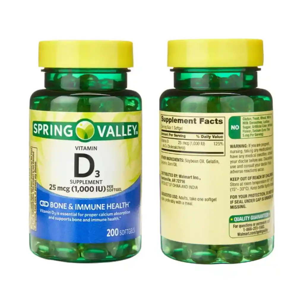 Spring Valley Vitamin D3 25mcg 1000iu 200 Softgels