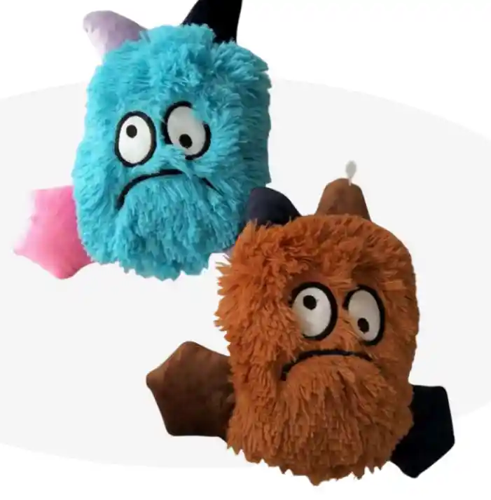 Función para mascotas Juego interactivo: Están diseñados para que las mascotas los persigan, muerdan, sacudan y abracen. Estimulación sensorial: Muchos de estos juguetes contienen características como chirriadores (squeakers) y materiales que crujen para captar la atención de la mascota y mantenerla entretenida. Comodidad: El material de felpa suave los hace adecuados como compañeros cómodos para que las mascotas se acurruquen. Durabilidad: Los productos específicamente diseñados para mascotas suelen contar con costuras reforzadas para resistir el juego rudo y la masticación.