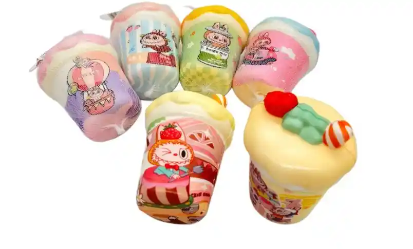 FIGURAS DE SQUISHY PARA ANTIESTRES hermosos y divertidos diseños figura de vaso de helado labubu apto para pequeños alto de 9 cm aptos para mayores de 3 años si deseas algo adicional indicanos y con gusto te colaboramos