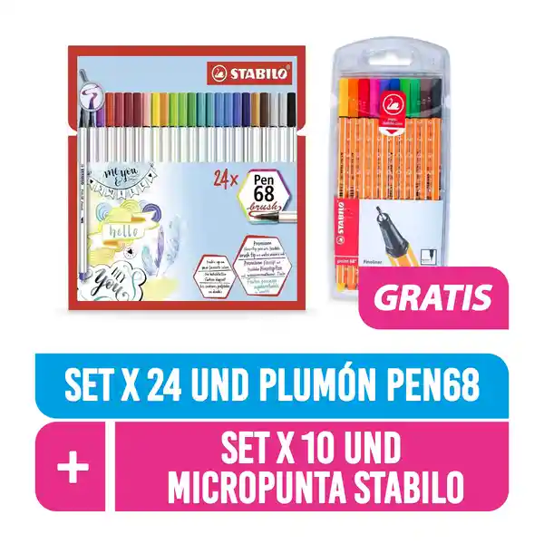 Set Contiene: Estuche Plumones Para Lettering 24 Und + Estuche Micropunta 10 Und. Increíble Promoción de la Marca Stabilo. Características Plumígrafo Pen 68 Brush: Ideal Para Quienes Empiezan Con el Lettering: Gracias a su Punta de Pincel Flexible, Enseguida Sientes la Presión Del Mismo Que Determina Como de Finas o Gruesas se Pueden Hacer Las Líneas. Para Los Artistas Avanzados, el Pen 68 Brush Cubre un Amplio Espectro de Aplicaciones: Desde Detalles Pequeños, a Sombras Pasando Por Estampaciones. Es Único: Puedes Combinar Cualquiera de Sus 19 Colores Brillantes Para Crear Nuevos Resultados y Mezclas. Si Los 14 Colores no Son Suficientes, Mézclalos en Tus Creatividades Tanto Del Pen 68 Brush Como Del Rotulador Premium Pen 68. Dale a tu Bullet Journal, Postales u Otros Proyectos Creativos un Nuevo Giro Con Brillantes Colores y Gran Cobertura. Características Del Micropunta Point 88: Punta de Fibra Con Refuerzo Metálico. Apto Para su Uso Con Reglas y Plantillas. No se Seca si se Deja Sin Tapón Durante Largos Periodos. Tapón Ventilado. Ancho de Trazo: 0.4 mm. Aprovecha Esta Promoción Por Tiempo Limitado