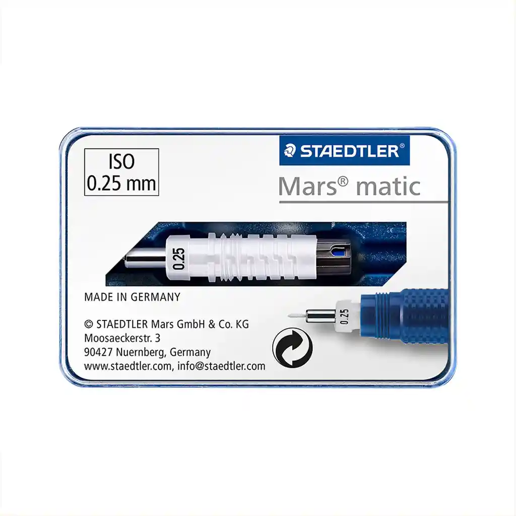Mars matic 750 Puntera de recambio | STAEDTLERAncho de linea: 0.25 mmInformación del Producto• Para plumas técnicas Mars matic 700• Está especialmente diseñado para un trabajo preciso, ya sea una planificación milimétrica exacta de las habitaciones o dibujando sus visiones hasta el último detalle• Se puede utilizar en el dibujo y el trazado• Un instrumento de redacción que también satisface las demandas de los usuarios semiprofesionales o estudiantes con el mayor nivel de precisión• Se puede utilizar con un compas y la mayoría de guías de letrasNúmero de artículo: 750 M025Hecho en AlemaniaCalidad, buen servicio y precio justo!butaca art