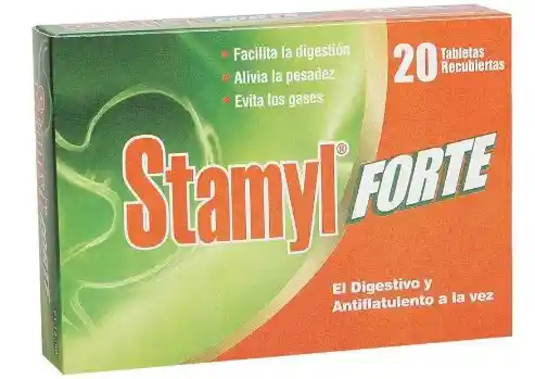 Stamyl Forte es un medicamento que combina enzimas digestivas (pancreatina) con simeticona para aliviar la indigestión y expulsar gases acumulados en el tubo digestivo. La dosis recomendada es de una tableta tres veces al día, inmediatamente después de las comidas. En casos graves, se puede aumentar la dosis a dos tabletas después de cada comida.