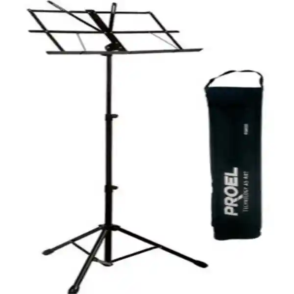 Stand Partitura Proel RSM600 Atril Partituras Rsm 600 Proel RSM600 Atril para partituras Soporte partituras musicales profesional de tubo de acero resistente. Totalmente ajustable en altura en 3 posiciones, inclinable mediante las nuevas abrazaderas de bloqueo, mejorada para otorgar la máxima estabilidad. Bolsa de transportar de nylon 210 incluida. Disponible en negro mate. Altura mínima: 50.0 cm Altura máxima: 112.0 cm Dimesiones del plato: 50.0 x 29.0 cm Peso: 1.90 kg Peso máximo de carga: 4 kg Color: Negro Maleta de Nylon color negro incluida Nylon