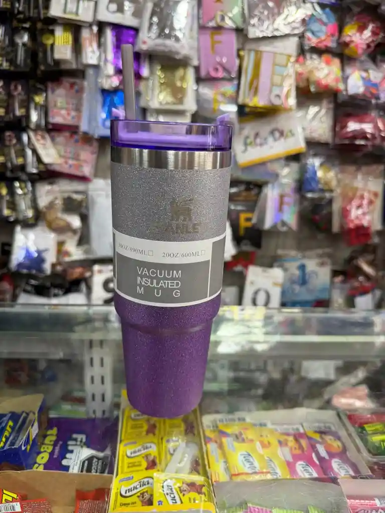 🟣 Termo Stanley Morado Brillante – Doble Pared con Tapa y Pitillo ¡Mantén tu bebida favorita a la temperatura ideal y hazlo con estilo! Este espectacular termo Stanley color morado brillante cuenta con un diseño moderno y elegante, perfecto para quienes buscan funcionalidad y estilo en un solo producto. ✅ Características: Marca: Stanley (inspirado en el clásico diseño) Color: Morado con acabado brillante texturizado Tapa: Rosca con cierre seguro y pitillo reutilizable incluido Aislamiento: Doble pared Vacuum Insulated que mantiene tus bebidas frías o calientes por más tiempo Capacidad: 30oz (890 ml) 20oz (600 ml) (modelo variable según disponibilidad)