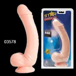 Dong de 9″ con 7 pulgadas insertables y circunferencia de 1.8″. Punta realista, bolas y eje firme. Base de ventosa compatible con arnés. Resistente al agua