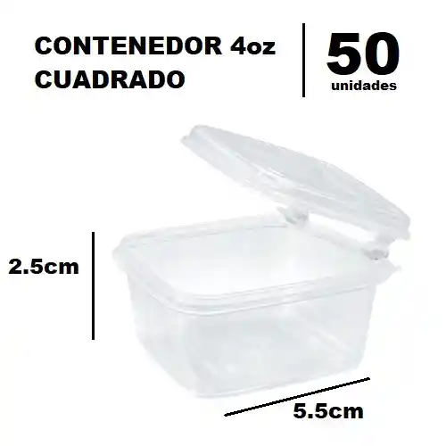 Contenedor Cuadrado 4onz Con Tapa Tipo Bisagra 50und