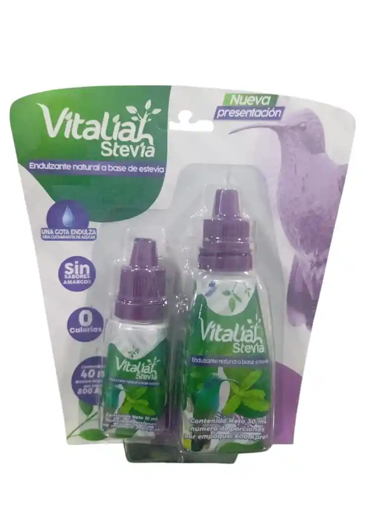 Stevia natural y sin calorias, endulza tus comidas sin agregar calorias, no afecta la glucosa, ideal para personas que no pueden usar azucar, sin sabores amargos, una gota endulza como una cucharadita de azucar.
