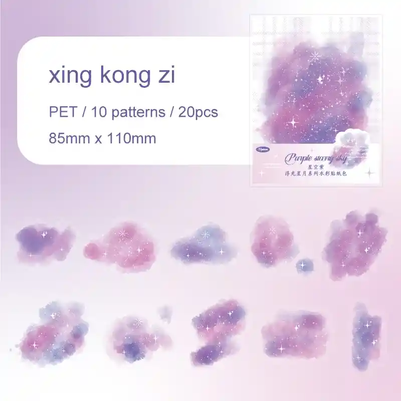 Sticker De Nube Estilo Acuarela Color morado X20 Und Scrapbooking