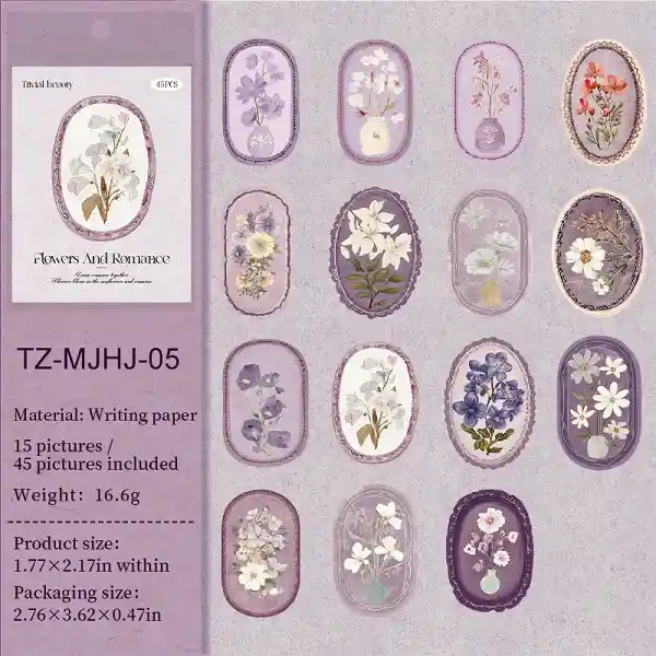 Sticker decorativo estilo vintage con diseños florales x45 und scrapbooking