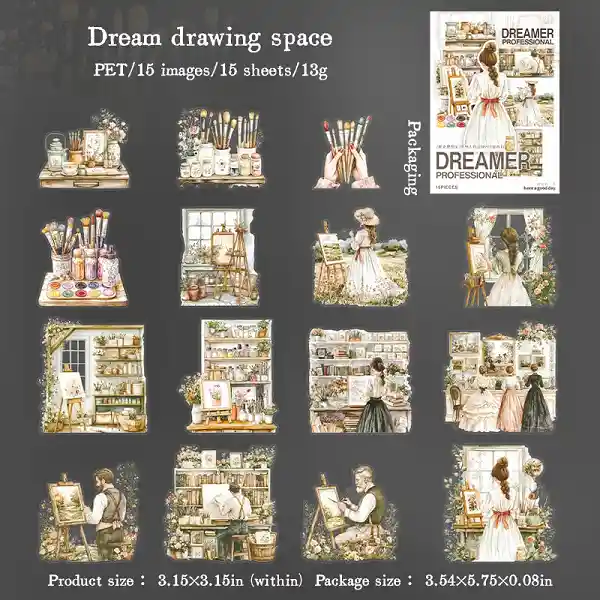 Sticker estilo artistico de personajes x15 und scrapbooking