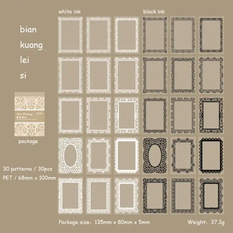 sticker hojas de encaje blanco y negro para manualidades y scrapbooking