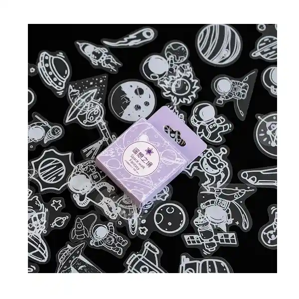 Sticker Transparente con forma espacial, planetas y austronautas x25 und scrapbooking
