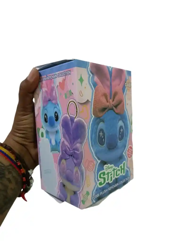 Caja Sorpresa con llavero de Peluche Stitch en presentación de colección, perfecto para detalle único 🎁 Motivo surtido, puede llegar cualquier sorpresa. Hipoalergénico.