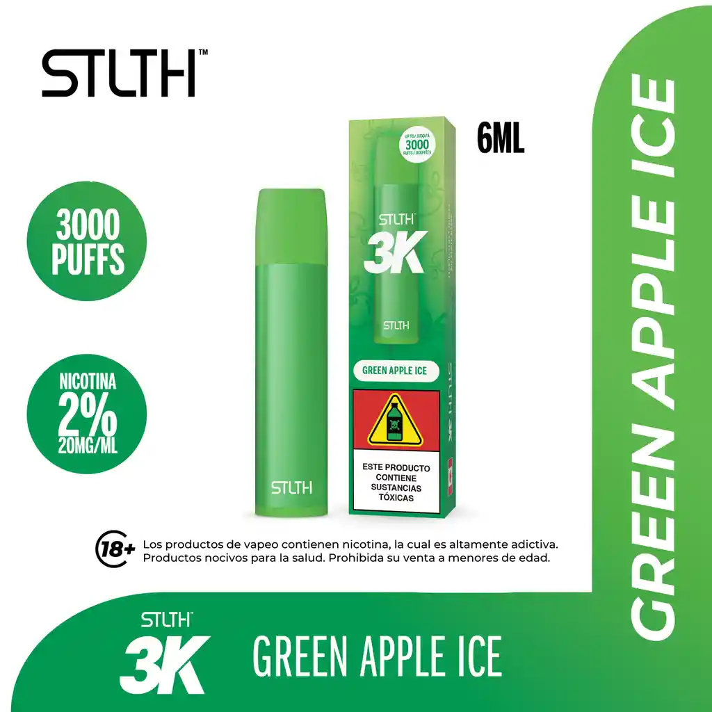 STLTH 3K Disposable Green Apple Ice