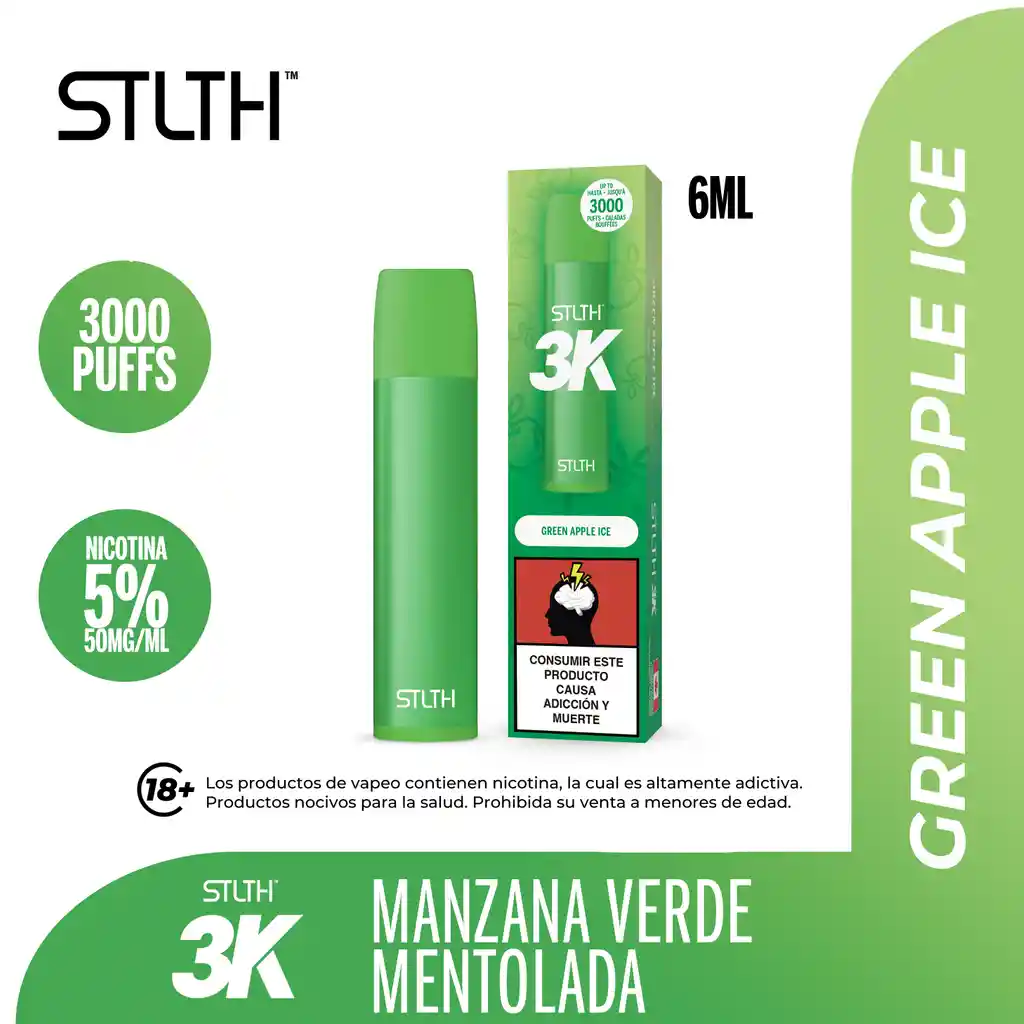 STLTH 3K Disposable Green Apple Ice