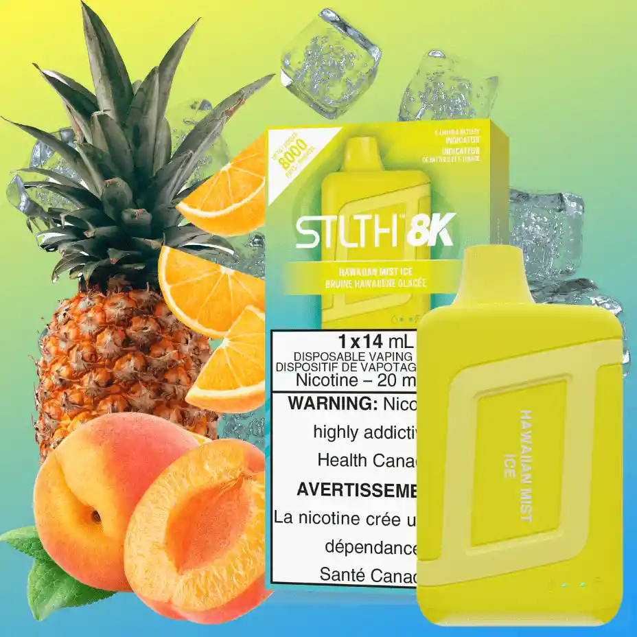Contenido Una mezcla tropical de frutas para enviarte directo a la playa. Categoría: FRUTALES MENTOLADOS Contenido: 14 ML Nivel de Nicotina: 50 MG/mL Capacidad de la batería recargable: 800 mAh Calada: Hasta 8000 puff* Dimensiones : 80 mm x 26 mm x 44,5 mm *El conteo de puffs puede variar según el hábito de uso de las personas 1 nivel de Nicotina: 50 mg Cada gama de sabores es elaborada diseñada específicamente para STLTH. Nuestra mezcla de nicotina es patentada, fabricada con el propósito de ser extra suave para adaptarse a los fumadores adultos que buscan cambiar el tabaco tradicional. 18+ Los productos de vapeo contienen nicotina, la cual es altamente adictiva. Productos nocivos para la salud. Prohibida su venta a menores de edad Prohibida la venta a menores de edad. Producto nocivo para la salud que contiene nicotina, sustancia altamente adictiva. Antes de consumir consulte las indicaciones y contraindicaciones de uso