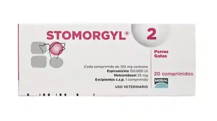 es un antibiótico de amplio espectro para perros y gatos, indicado para el tratamiento de infecciones bucodentales y faríngeas (gingivitis, periodontitis, halitosis, abscesos) combina espiramicina y metronidazol, actuando contra bacterias anaerobias y aerobias.