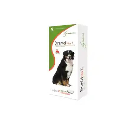 El Praziquantel penetra en el parásito y lo paraliza, lo que provoca una alteración en el flujo de iones de calcio en sus células, generando una contracción muscular o espasmo y disminuyendo la capacidad del gusano para contraerse o relajarse. Así, es expelido por el organismo, pues ya no consigue fijarse en sus celulas blanco. Además, este medicamento parece interferir con la absorción de la adenosina por los vermes en el medio de cultivo, de manera que son incapaces de sintetizar las purinas de nuevo. El Pirantel actúa estimulando la liberación de la acetilcolina, inhibiendo la colintesterasa y estimulando las neuronas gangliónicas de los parásitos. En consecuencia actúa como un bloqueador neuromuscular en los helmintos. El Febantel es un probencimidazol que se metaboliza en los mamíferos a febendazol y oxfendazol, sustancias con actividad antihelmíntica; que inhiben el metabolismo energético de los parásitos gracias a su capacidad de actuar sobre los sistemas enzimáticos y sobre la captación de sus fuentes energéticas. Esta interferencia provoca una disminución en la disponibilidad de la energía necesaria para el funcionamiento normal de los órganos vitales de los parásitos, lo cual conduce a un agotamiento de sus fuentes energéticas provocando su muerte. Su unión a la tubulina durante el crecimiento de los microtúbulos provoca la inhibición de la mitosis. El Fenbendazol es un benzimidazol que impide la toma de glucosa y el metabolismo energético del trofozoito de la Giardia. Tratamiento de infecciones mixtas por nemátodos y céstodos de las siguientes especies: Nemátodos: Ascaris: Toxocara canis, Toxascaris leonina (adultos y formas inmaduras finales). Anquilostomas: Uncinaria stenocephala, Ancylostoma caninum (adultos). Tricocéfalos: Trichuris vulpis (adultos). Céstodos: Diferentes especies de Taenias: Echinococcus granulosus, E. multilocularis, Taenia. hydatigena, T. pisiformis, T. taeniformis y Dipylidium caninum (Adultos y formas inmaduras). Dosis para administración oral únicamente. Para asegurar la administración de una dosis correcta, se debe determinar el peso corporal del animal con la mayor precisión posible. Las dosis recomendadas son: Febantel 15 mg/kg de peso corporal, Pirantel 5 mg/kg (equivalente a 14,4 mg/kg de Embonato de Pirantel) y Praziquantel 5 mg/kg de peso corporal. En la práctica, esto es equivalente a administrar 1 tableta de STRANTEL® PLUS XL por cada 35 kg de peso corporal. Las tabletas pueden administrarse directamente al perro o se pueden mezclar con los alimentos. No se necesita ningún ayuno antes o después del tratamiento. Las tabletas deben administrarse como una única administración o tratamiento cada tres meses dependiendo del reto de campo. Dosis