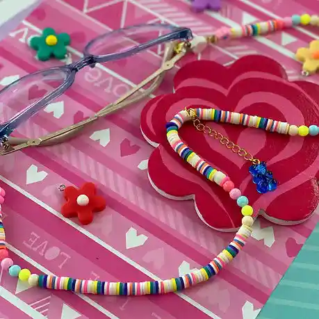 Strap para tús gafas fabricado de cuentas de arcilla polimérica. Ideall para lucirlas de una manera vintage y auténtica. Medidas: 63 cm