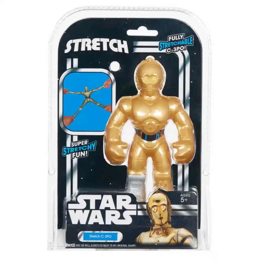 America Store te trae Stretch Mini Star Wars C3PO De Hasbro ¡El único e inigualable Stretch Star Wars C-3PO está aquí en forma de Stretch! Estíralo, tira de él, átalo con nudos. Cuando lo sueltas, usa su increíble estiramiento para volver lentamente a su tamaño y forma normales. Caracteristicas clave * Puede estirarse hasta 3 veces su tamaño real, lo que ofrece una nueva forma de jugar. * Apto para mayores de 5 años.