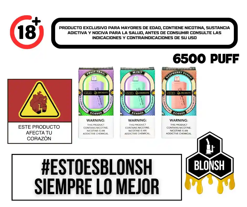 El Strio XC6500 Vape – Desechable es la opción perfecta para quienes buscan una experiencia de vapeo premium sin complicaciones. Este dispositivo, diseñado tanto para principiantes como para usuarios avanzados, ofrece una combinación de facilidad de uso y sofisticación. Con 12 ml de e-líquido precargado, el Strio XC6500 te brinda hasta 6500 inhalaciones, permitiendo disfrutar de un vapeo continuo durante días sin necesidad de recargar. Además, el Strio XC6500 Vape – Desechable cuenta con una batería integrada de 600 mAh, lo que asegura que puedas disfrutar del dispositivo hasta agotar por completo su e-líquido. Este vaporizador desechable es ideal para quienes buscan un dispositivo confiable y duradero, sin comprometer la calidad ni el rendimiento. Características del vaporizador Strio x EB Create XC6500: E-líquido precargado de 12 ml 6500 inhalaciones por dispositivo Batería integrada de 600 mAh Strio x EB Crea sabores XC6500: Verano: una mezcla vibrante que captura la esencia de un día perfecto de verano. Dragon Fab King: una mezcla majestuosa de fruta del dragón y sabor clásico para el paladar exigente. OG FAB King: el favorito original con un toque real para un clásico atemporal. Kiwi Dragon Strawberry: un trío exótico de kiwi, fruta del dragón y fresas dulces. Kiwi Granada Mango: Un viaje de sabores con kiwi, granada y mango jugoso. Pacific Chill: Una refrescante ola de frescor inspirada en el Pacífico. Menta: Frescura mentolada fresca y crujiente para una experiencia revitalizante. Fruit Trail: Un sendero de delicias frutales para un viaje a través de sabores vibrantes. Mango de maracuyá: maracuyá tropical y mango suculento, un dúo delicioso. Ponche de piña: El toque de piña para darle un toque de sabor espectacular. Fresa, Piña y Frambuesa: La dulzura de las fresas con piña picante y frambuesa. Raspberry Punch: intenso sabor a frambuesa para una experiencia impactante y vibrante. Bayas mixtas: una explosión de bondades de bayas mixtas en cada bolsa.
