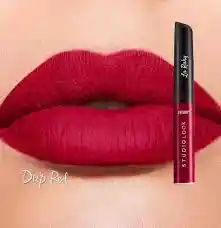 El labial líquido Studio Look tono Deep Red de Cyzone ofrece un acabado 100% mate de alta pigmentación en un tono rojo intenso, ideal para un look sofisticado. Su fórmula de larga duración promete hasta 24 horas de fijación sin transferirse, brindando una textura cómoda, no pegajosa y sin resecar los labios.